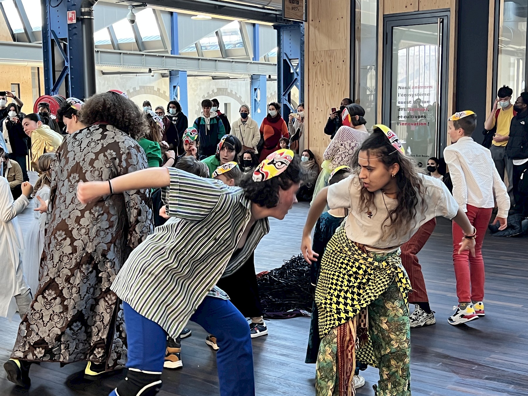 À l'issu de plusieurs ateliers ayant mis au travail le rythme, le chant, le travestissement et la transgression, un groupe formé d’enfants, de collégien.nes et d’étudiant.es fera irruption dans le Festival DansFabrik et partagera les voix et les danses qu'iels portent !”