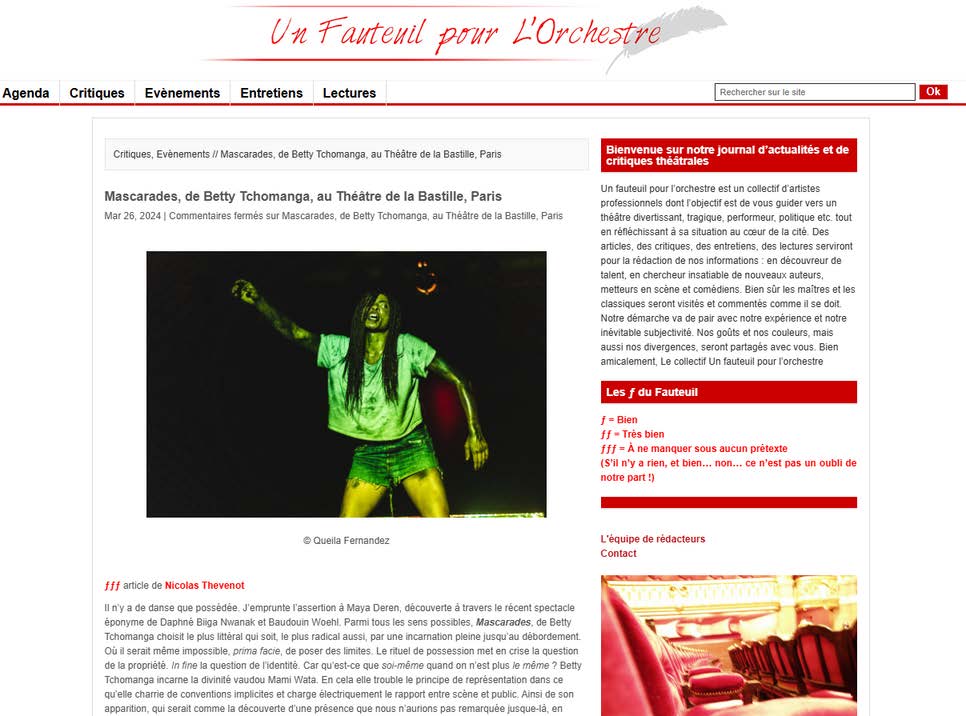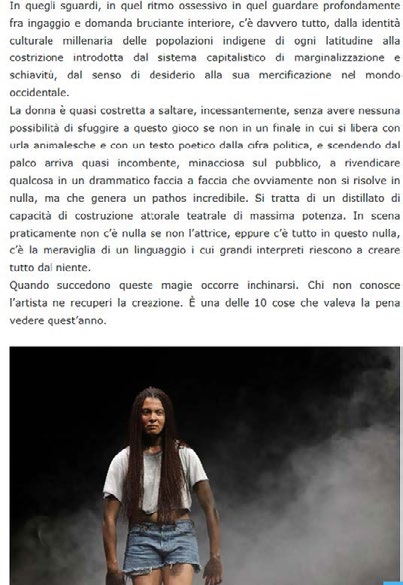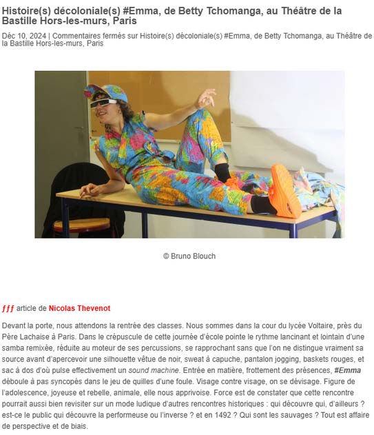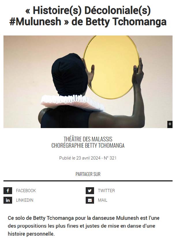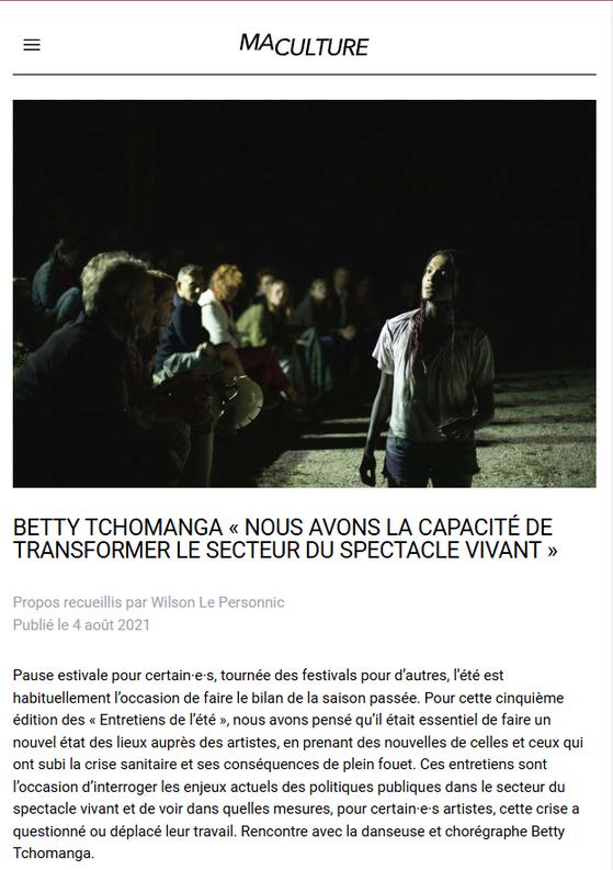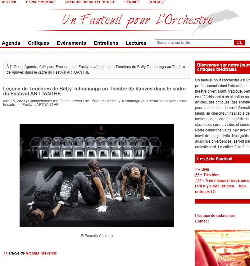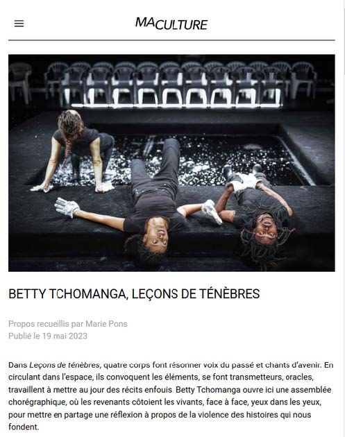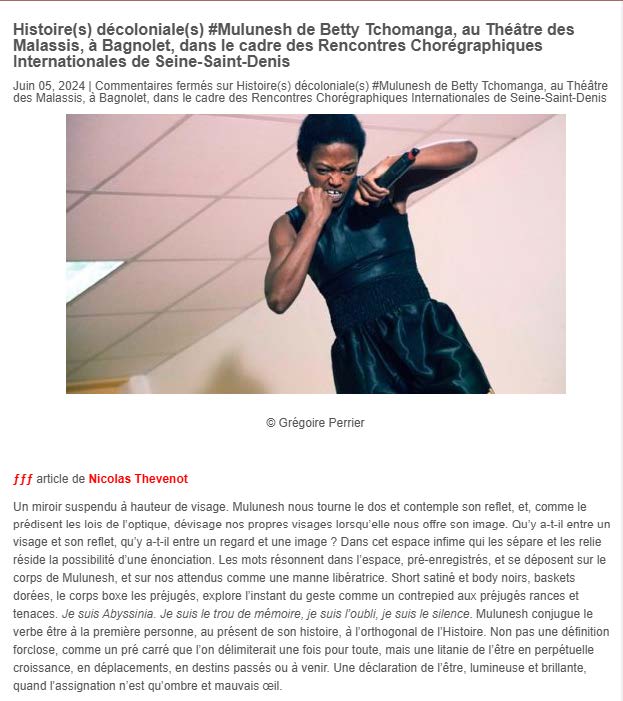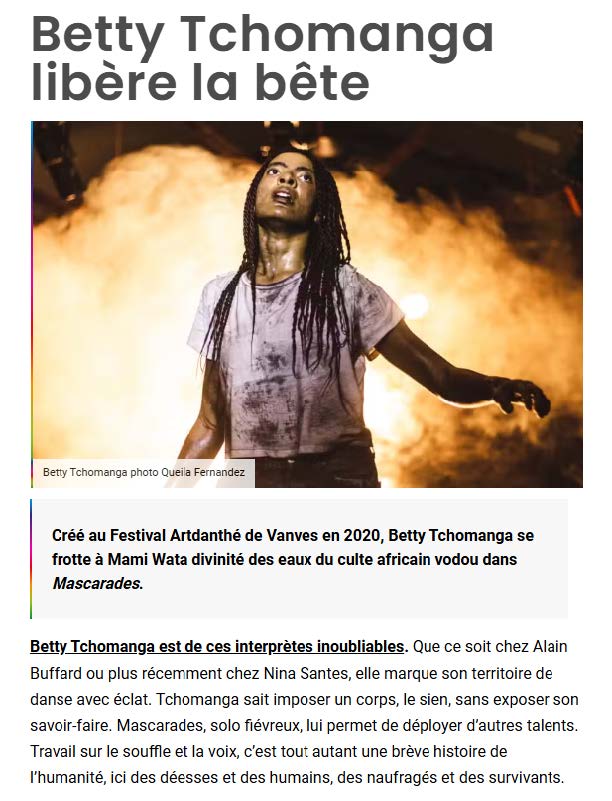 « Betty Tchomanga a écrit avec précision ce solo : la force de son incarnation n’a d’égale que l’exactitude de son écriture scénique. »